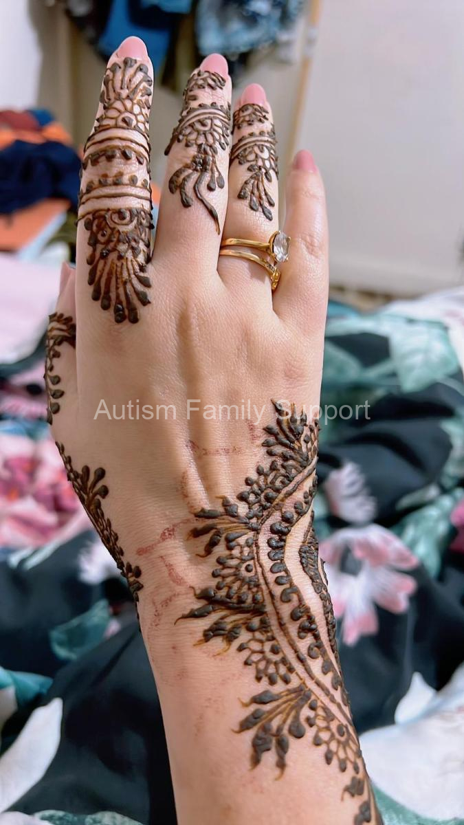 At Autism Family Support, we embrace the beautiful tradition of henna painting, known as Mehndi, which holds deep cultural significance in South Asian communities. From April to July 2024, our project “Henna Painting with Artist Sidrah Afzal” brought this art form to life, combining cultural expression with supportive programming for autistic and special needs children.